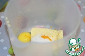Взбить тщательно масло комнатной температуры с сахаром (оставить немного сахара на обсыпку яблока), добавить яйцо, соль, цедру.