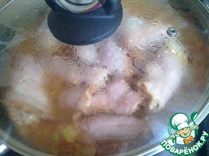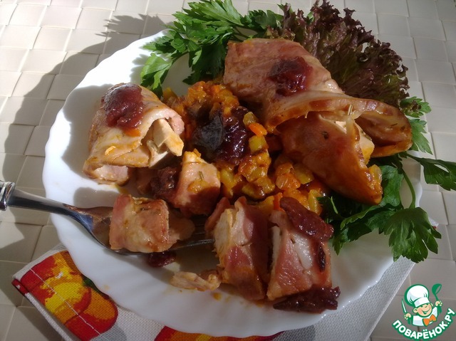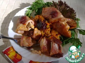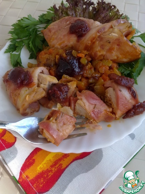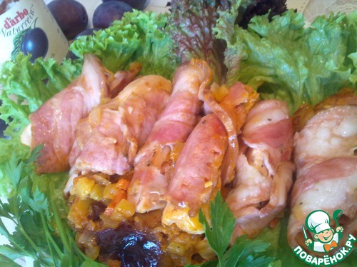Рецепт «Овощи с куриными рулетиками в беконе»: