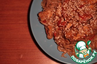 В сковороду выложить оставшийся соус и 50-70 мл воды. Тушить при закрытой крышке 10-15 мин.