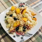 Через 3-5 мин смешиваем готовый кус-кус с фруктами. Зовем семью завтракать. При желании можно полить медом.