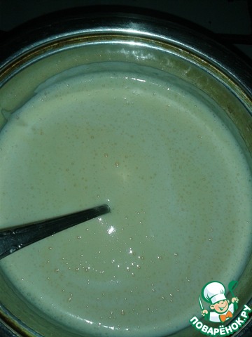 Взбиваем яйца с сахаром, добавляем муку и тёплое молоко. Всё взбиваем и, помешивая, доводим до кипения