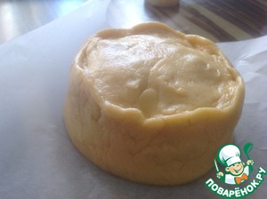 Маленький шарик теста раскатать в размер крышечки для бочонка.