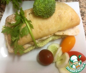 Булку или боката - bocata по-испански разрезаем по-полам и начинаем толстым слоем сырного брокколи и сверху выкладываем филе индейки.