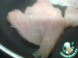 Грудку индейки нарезать на тонкое филе и обжарить на сильном огне до готовности.