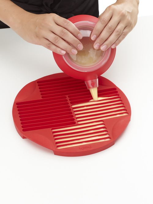 В 100 гр приготовленного теста добавить ингредиенты необходимые для получения палочек различных вкусов. Тщательно перемещать тесто до получения однородной массы и налить его в «Декопен» без насадки. Наполнить форму тестом до отметки max.