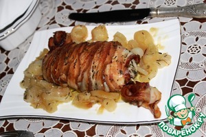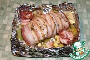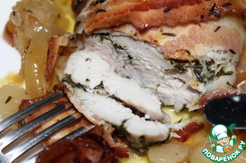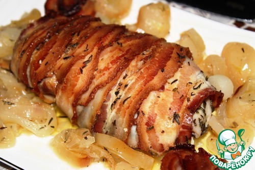 Куриная грудка с беконом, луком-пореем и тимьяном