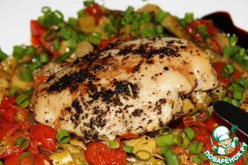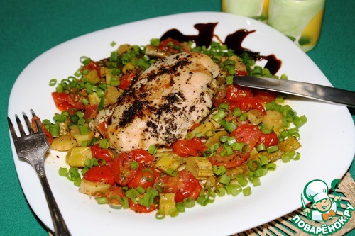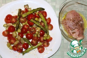 Куриная грудка с помидорами черри и спаржей
