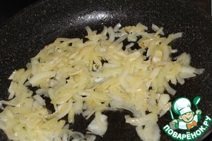 Разогреем в сковороде оливковое масло и одну столовую ложку сливочного и обжарим лук до румянца.