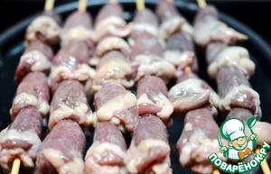 Рецепт «Куриные сердечки на шпажках в брусничном маринаде»: