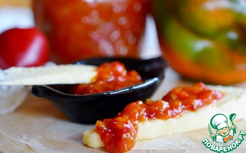 Эту приправа (заготовка, соус) просто идеально подойдёт к сыру. Несложно готовить, а результат обязательно Вас порадует. Можно закрыть в банки и хранить без холодильника. Отличный рецепт для любителей болгарского перца.