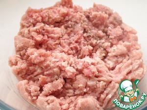 Мясной фарш (у меня заранее перекрученная свинина) солим (1/2 ч. л.) и перчим.