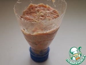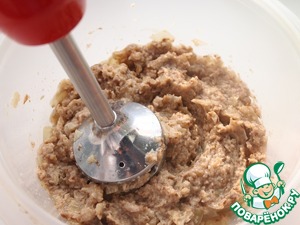Блендером измельчить мясной фарш с грибами до однородной массы.