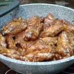 Разогреть сковороду ( очень хорошо готовить в воке..), но подойдет любая глубокая сковорода. Крылья обжарить партиями с двух сторон. Когда одна партия готова, сдвигаем ее к стенкам, освобождая центральную часть сковороды, и выкладываем следующую партию. И так чуть обжариваем все крылышки