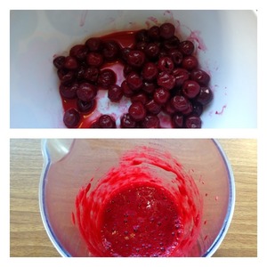 Вишню предварительно разморозить. В блендере взбить вишню, сахар и мускатный орех