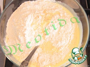 Добавить муку и разрыхлитель, перемешать все до однородности.