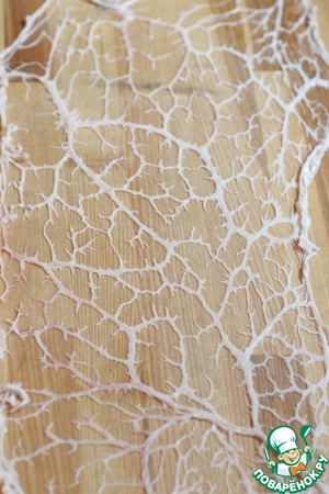 Жировую свиную сетку хорошо промыть и обсушить бумажными полотенцами.