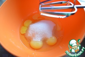Добавляем размягченное масло (можно использовать маргарин), соль и лимонный сок. На фото масло не видно, потому что оно у меня утопло в яично-сахарной смеси.