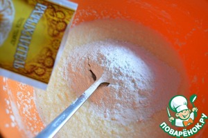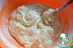 Постепенно всыпаем муку, просеянную через сито с разрыхлителем.