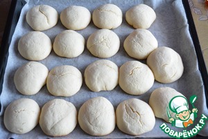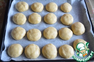 Затем скатать шарики (придать немного овальную форму) и выложить на противень, застеленный пергаментной бумагой.
