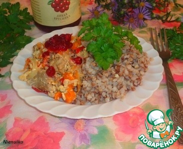 Даем блюду немного остыть и подаем к столу с брусничным соусом и гарниром.