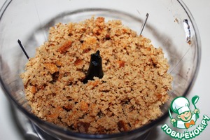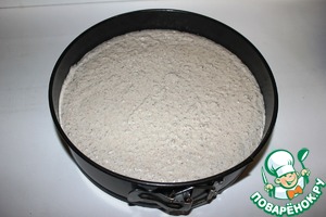 Выкладываю хлебную крошку в форму, разравниваю, прижимаю. Убираю форму в холодильник.