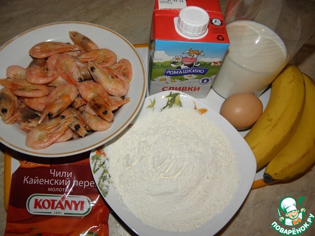 Ингредиенты для «Блины с креветками и банановым соусом»: