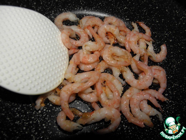 Начинка: креветки обжарить минуты 2-3 на растительном масле