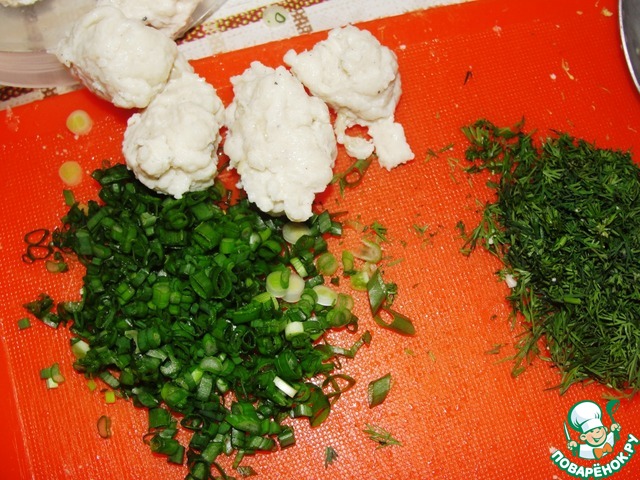 Самым последним положим зеленый лук и готовые клецки. Доведем до кипения, при подаче посыпем укропом.