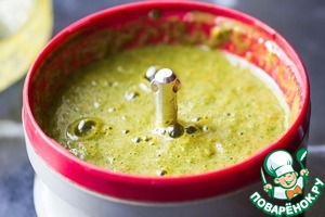 Измельчаем соус до однородного состояния. Он должен быть жидковат, при необходимости добавьте ещё воды.