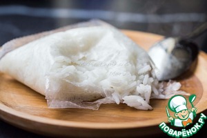 Выкладываем на тарелку рассыпчатый рис. Приготовление в пакетиках облегчает этот процесс.