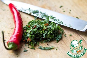 Мяту и перчик чили мелко порубим. Используйте перчик чили по вкусу.
