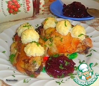 Рецепт «Курица с лимонным "безе" и клюквенным соусом»: