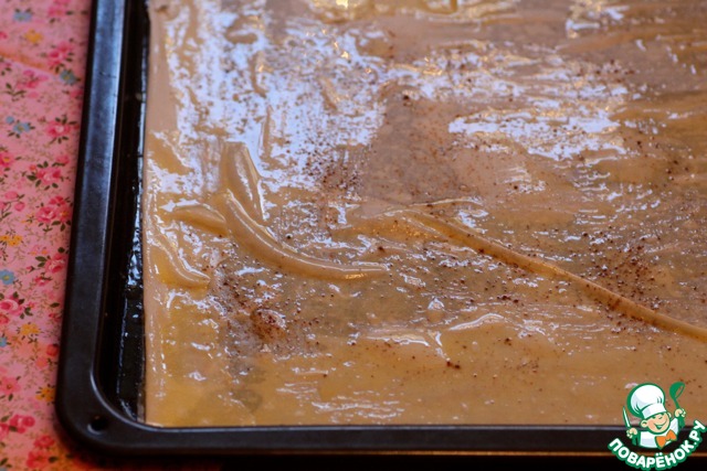 Сливочное масло растопить. Противень застелить пекарской бумагой и смазать маслом. Кладем первый лист теста фило, смазываем его топленным сливочным маслом и посыпаем корицей. Далее второй лист, опять слой масла. Его посыпаем ванильным сахаром. Повторяем тоже самое с следующими двумя листами. Зубочисткой прокалываем тесто по всей поверхности. Отправляем духовку на 10 минут. Тесто может приподняться не переживайте, после просто его аккуратно прижмете. -