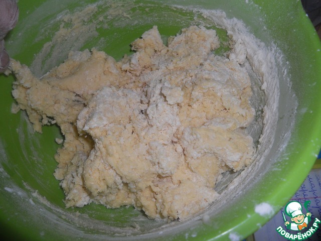 Добавить растопленное масло, муку и соду. Вымешать тесто.