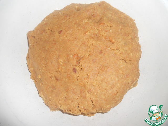 К крошке добавляем крем и вымешиваем. Получилось вот такое "тесто".