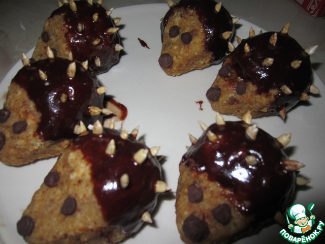 Из этого теста формируем будущих ёжиков и обваливаем их в перемешанном с пудрой маке, но не полностью, мордочку оставляем чистой.)