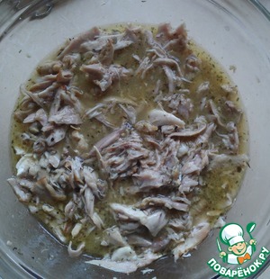 Смешайте мясо с бульоном.