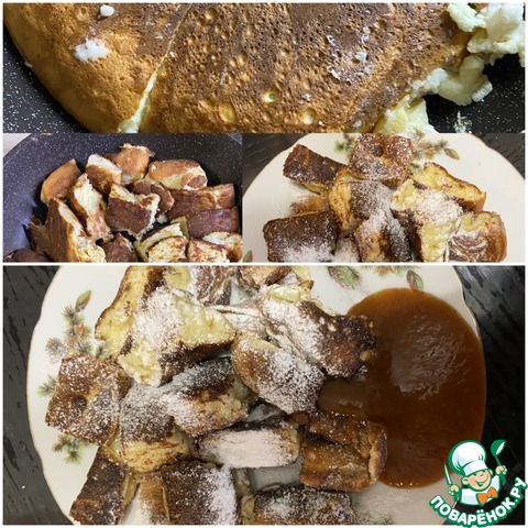 Можно в сковороде посыпать кайзершмаррен сахарной пудрой и немного карамелизировать около минуты. Весь процесс приготовления занимает минут 10-12.