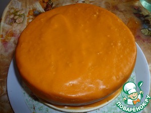 Верх и бока торта покрываем слоем тыквенного крема и даем застыть.
