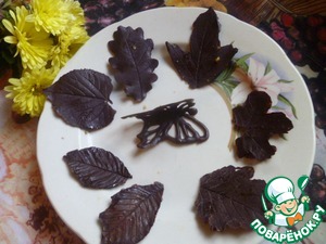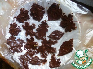 С помощью кисточки смазываем листики шоколадом в два слоя, каждый слой должен застыть. -