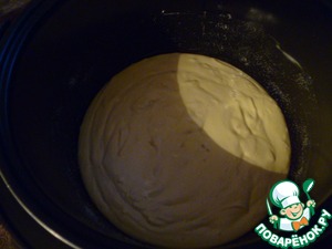 Смазать сливочным маслом дно и бока чаши, присыпать манной крупой и вылить тесто.