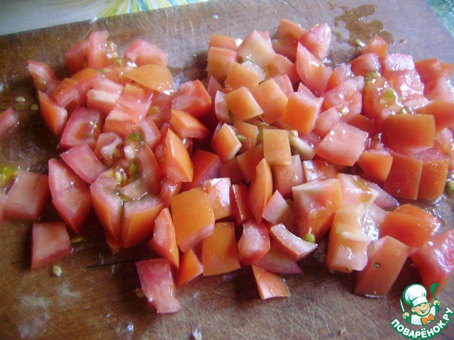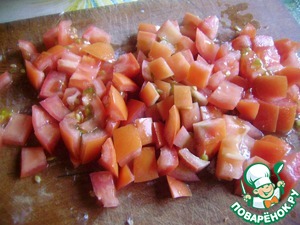 Помидоры нарезаем кубиками. Помидоров можно взять и больше, по своему вкусу.