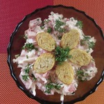 Очень нежный и пикантный салатик. Это любимый салат моего мужа. Угощайтесь!