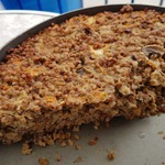 Полученную массу выложить в форму, утрамбовать и выпекать при температуре 180 градусов 40-45 минут.