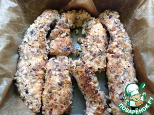 В глубокой миске смешать соль, сахар, перец, муку и пропущенные через миксер орехи. Тщательно перемешать. Ставим разогревать духовку. -