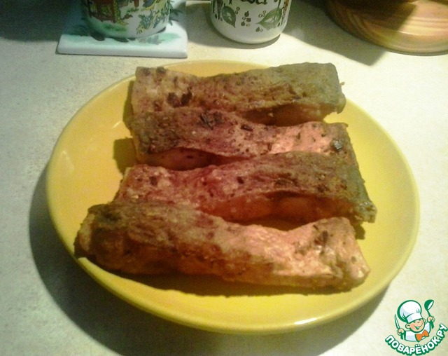 В форму, выстеленную силиконовым ковриком, выложить обжаренную рыбку и отправить запекаться в духовку на 10-15 мин. при 180 град.