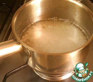 В то время, пока пирог выпекается, сварим сироп из стакана сахара и ½ стакана воды. Кипятить около 5 мин. Затем добавить апельсиновый ликер. По рецепту используется Куантро.