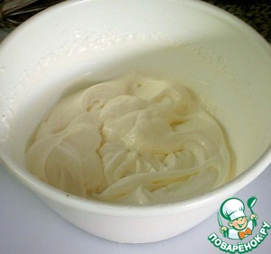 Теперь готовим крем. Взбиваем 150 г сливок и 200 г сливочного сыра с сахаром. Как вариант можно использовать и творожный сыр, лично мне так тоже нравится.