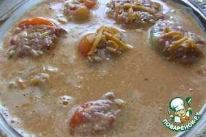 Готовый соус вылить в кастрюльку с перчиками. Так, чтобы соус покрыл перец. И ставим в духовку примерно на 40 минут.