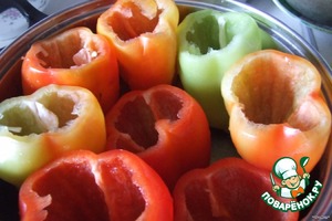Перец хорошо вымыть, удалить сердцевинку (семена) залить холодной водой и поставить на плиту, когда он закипит, оставить на плите примерно на 5-10 минут. -